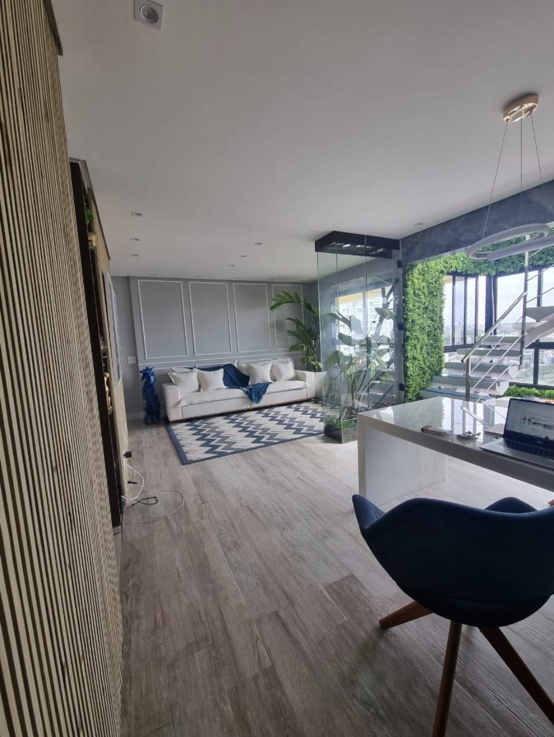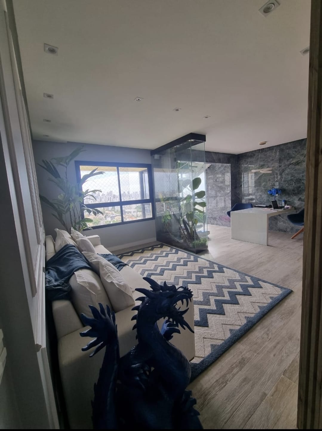 Espaço amplo e aberto. Com janelas grandes sempre com vista para salvador.